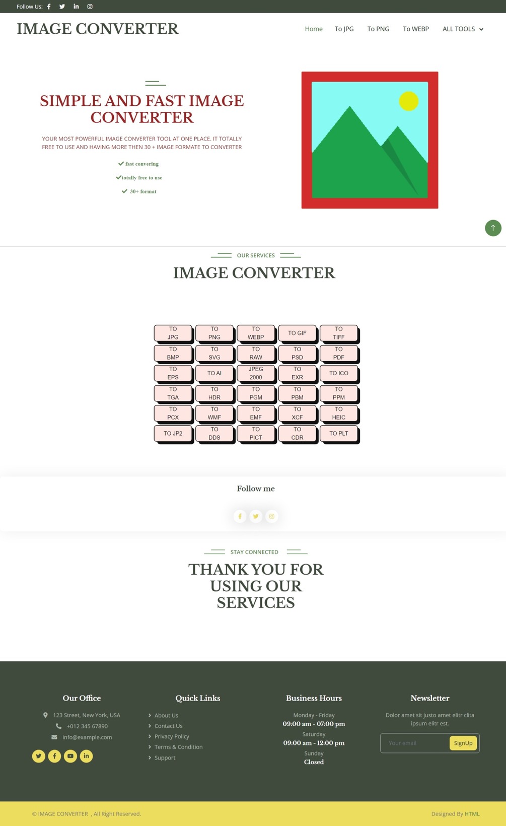 Image Converter with 30 convertible image format website (HTM,CSS,JAVASCRIPT) online tool website